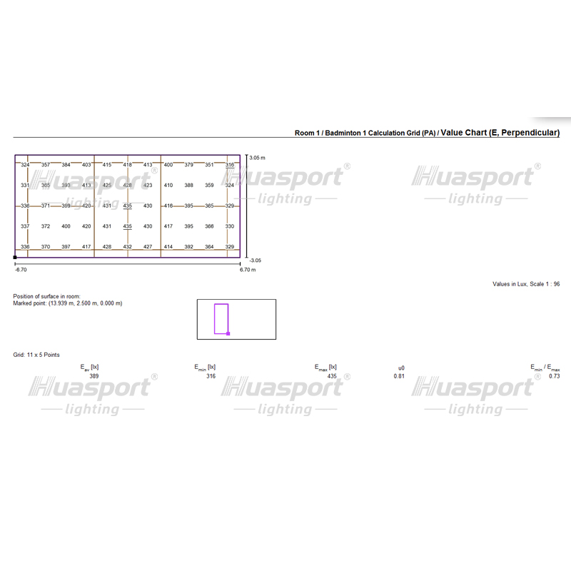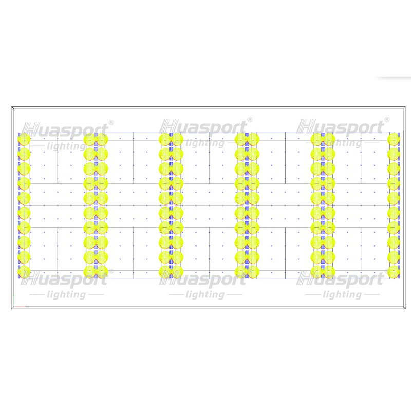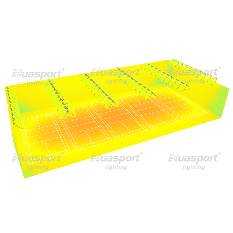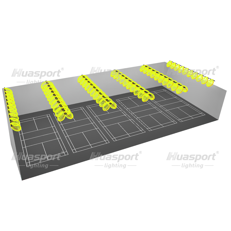 Ten 48W lamps are used for one court, with 10 lamps on each side and an installation height of 6 meters.