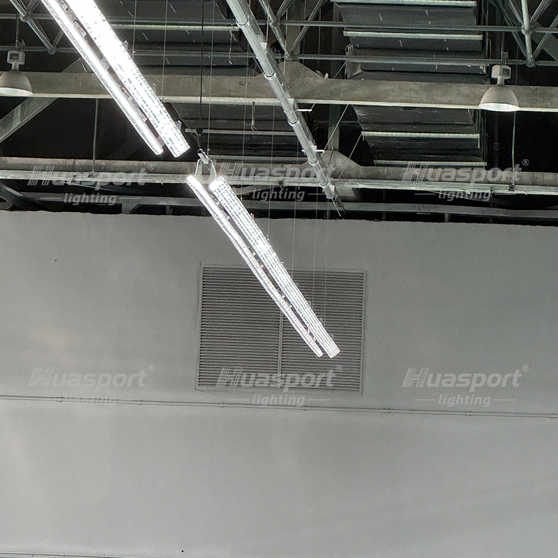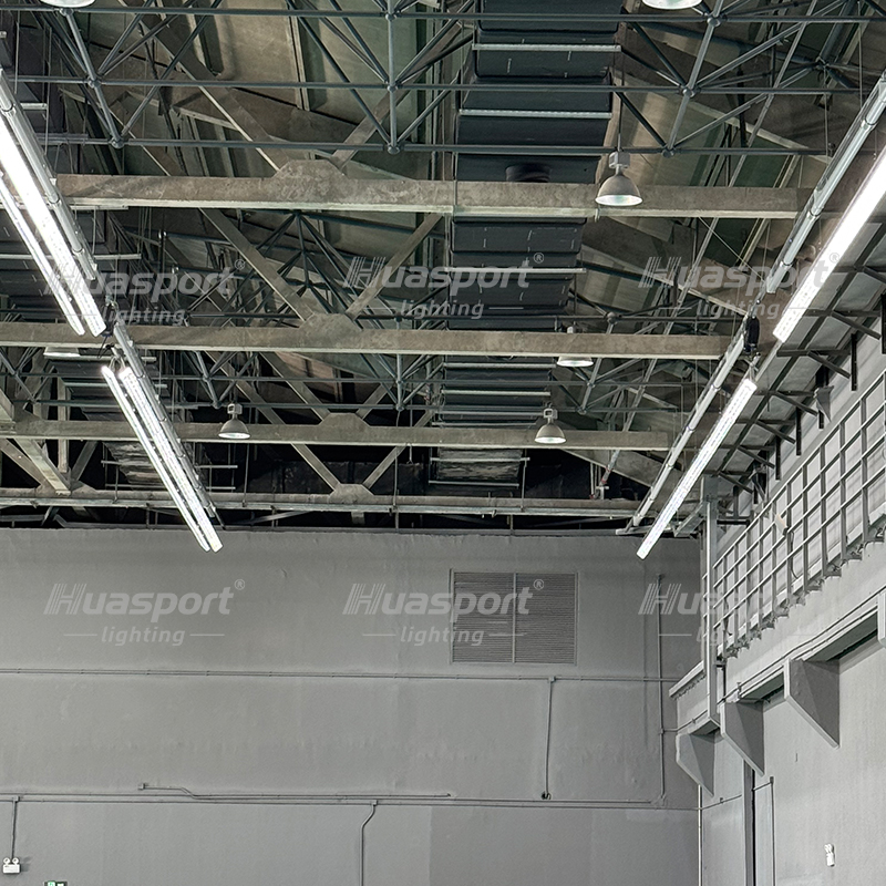 The luminaire adopts an anti-glare honeycomb design and is installed at a 30° tilt.