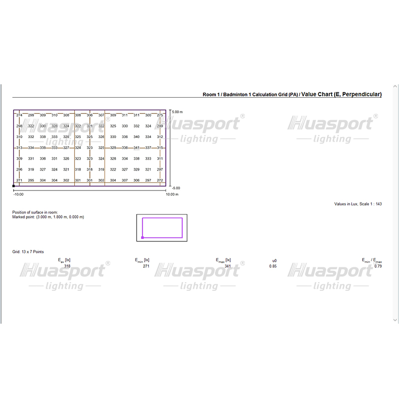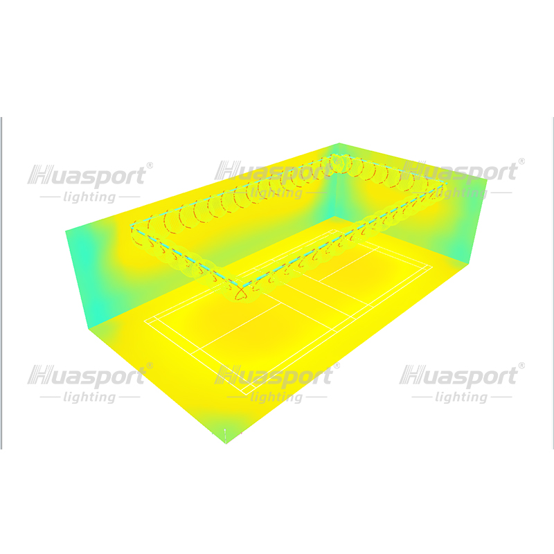 Ten 48W lamps are used for one court, with 17+8 lamps on each side and an installation height of 6 meters.