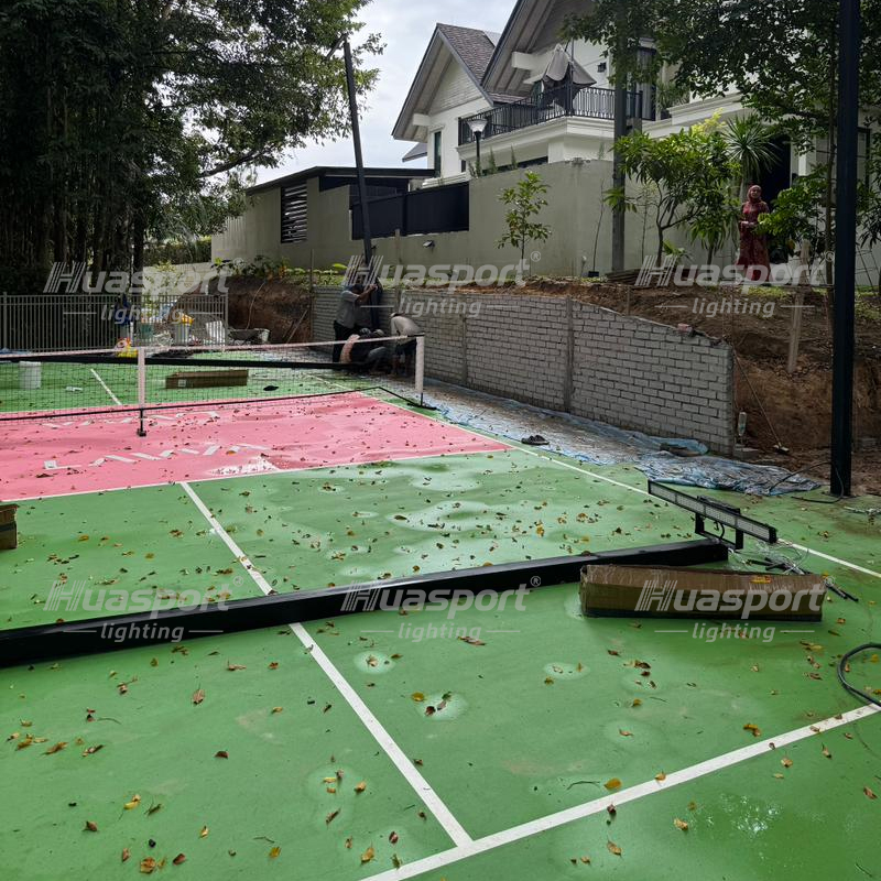 Ten 200W lamps are used for one court, with 2 lamps on each side and an installation height of 6 meters.