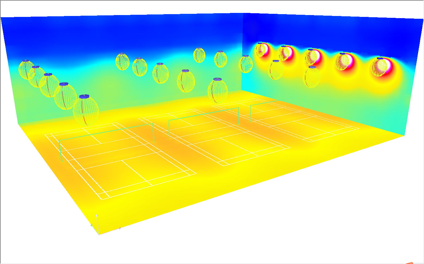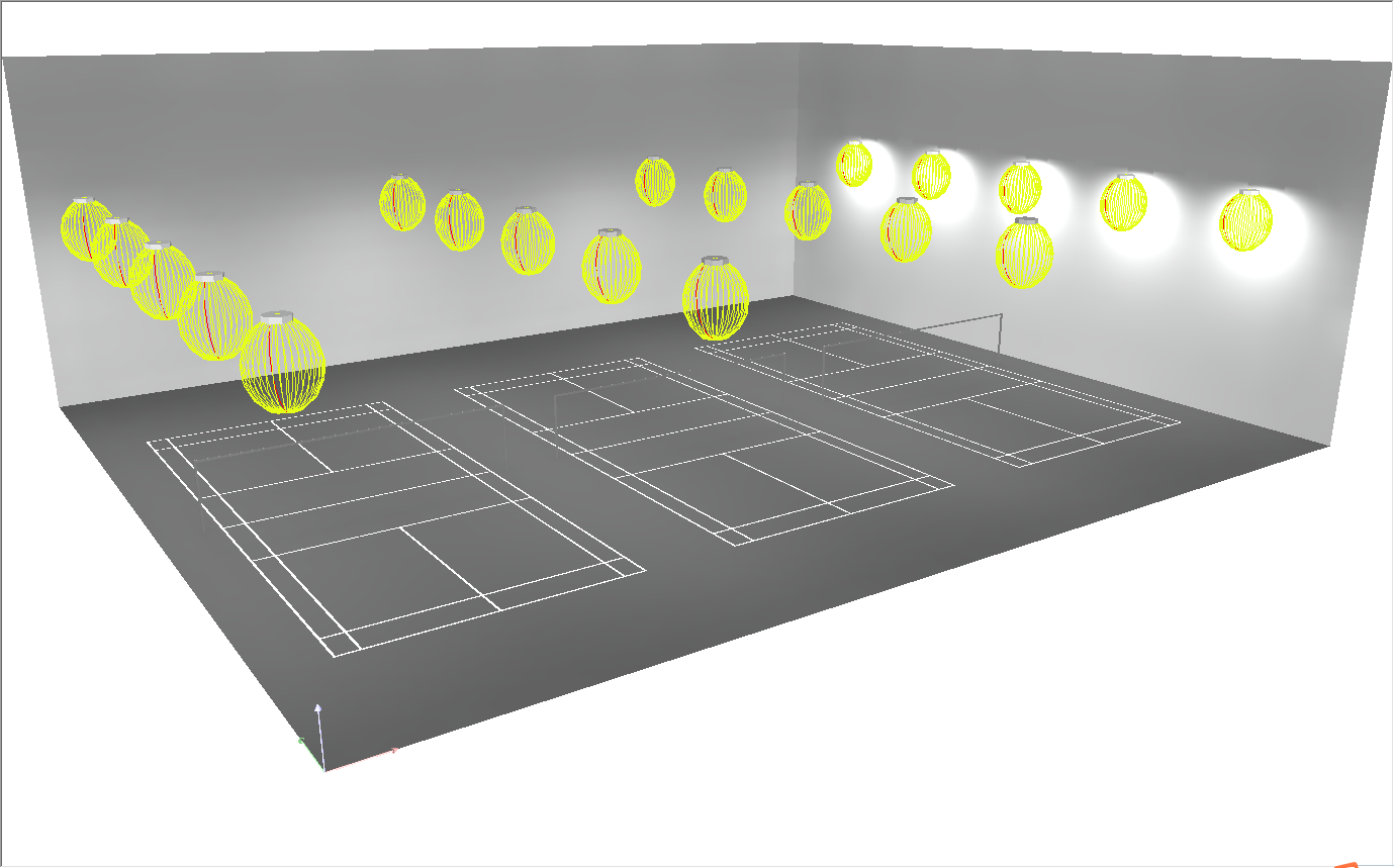 - Installation Quantity: 5 lights in one row, adjacent two courts share one row of luminaires