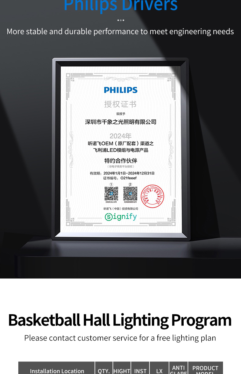 - Installation Quantity: 6 lights in one row, adjacent two courts share one row of luminaires