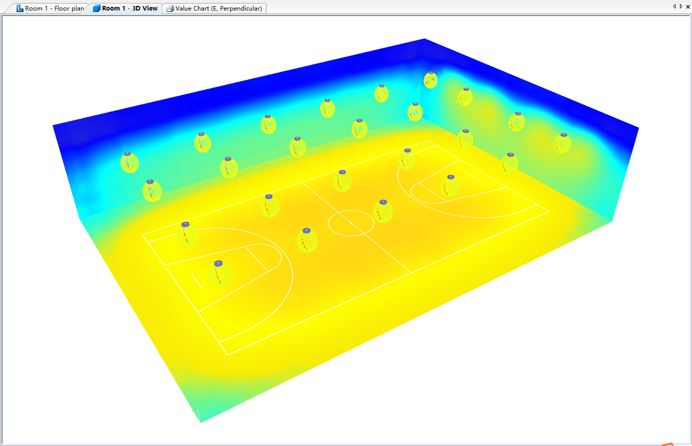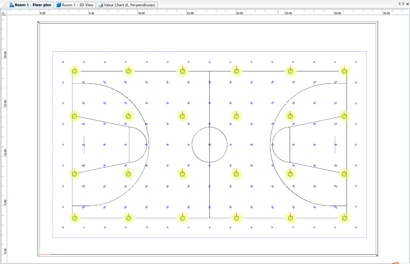 Indoor Basketball Gymnasium Lighting Configuration Plan